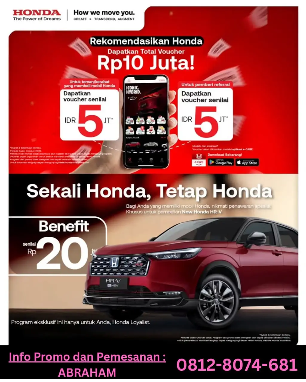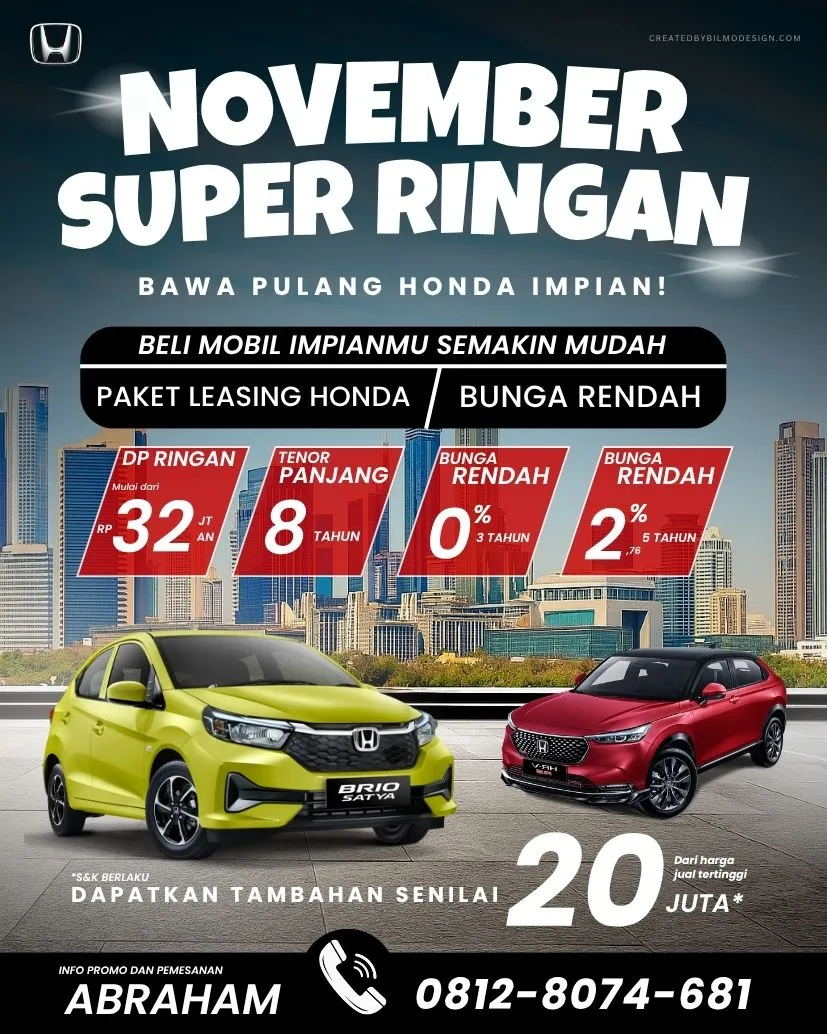 Nikmati promo, cicilan, cashback, dan DP ringan untuk berbagai tipe mobil Honda.